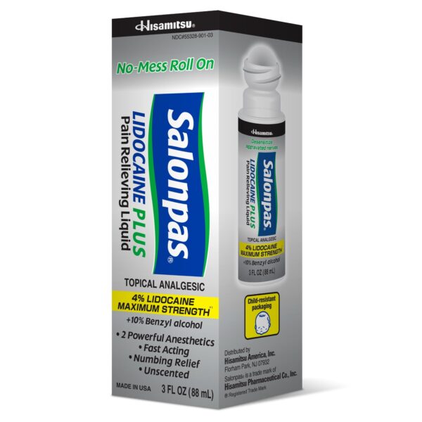 Salonpas Max Strength Roll-on with 4% Lidocaine is a great product! Easy to apply, fast-acting and with very effective pain relief. I’ve happily used their patches for decades and they are effective in reducing inflammation. The roll-on for pain relief is a wonderful addition to my medicine chest!