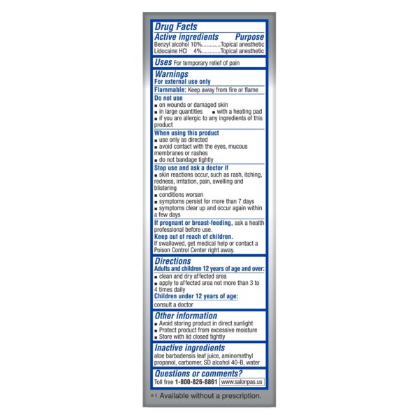Maximum strength Lidocaine 4%, available without a prescription, provides relief for minor aches & pains. Salonpas Lidocaine 4% pain relief cream helps muscle soreness, sprains, back, joint, and neck pain. Easily apply under clothing for hours of relief for adults and teenagers. Salonpas Maximum Strength is a combination of anesthetic (Benzyl Alcohol) that numbs nerves fast. While a second anesthetic (Lidocaine) is the maximum strength you can buy without a prescription relieves pain. That’s two powerful medicines that provide targeted relief and calms nerves for hours for adults and teenagers.