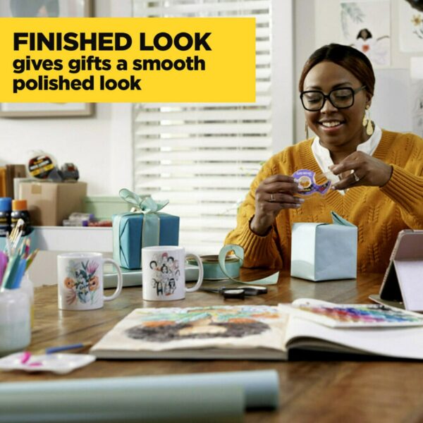 - SATIN FINISH: The clear wrapping tape has a satin finish that gives gifts a smooth, finished look, making it the go-to tape for holidays, birthdays and everyday celebrations