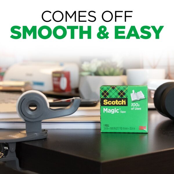Scotch Magic Tape lets you magically mend the many rips and tears of life – securely, permanently and invisibly. The original matte-finish invisible tape uses unique 3M adhesive technology to bond tightly with paper and disappear without a trace. It’s the ideal matte tape for permanent, secure paper mending, whether you need to make a quick fix or an addition to your project. This clear tape is also perfect for fixing torn or ripped originals, like birth certificates or library book pages. Easy to apply, this office tape is photo-safe for worry-free mounting or mending of special photos. You can even write on this adhesive tape with a pen, pencil or marker, making it easy to label items. With the easy-to-use Scotch tape dispenser (sold separately), Scotch Magic Tape rolls out smoothly and cuts easily with no time, energy or tape wasted. These dispensers are a convenient addition to school, classroom supplies or office supplies. Make an eco-conscious choice: refill and reuse the included hand-held office tape dispenser with Scotch Brand Tape. The best projects start with the No. 1-selling home and office tape (based on 2022 NPD data).