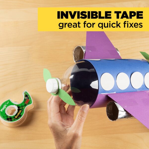 Scotch Magic Tape lets you magically mend the many rips and tears on school assignments – securely, permanently and invisibly. The original matte-finish invisible tape uses unique 3M adhesive technology to bond tightly with paper and disappear without a trace. It’s the ideal matte tape for permanent, secure paper mending, whether you need to make a quick fix or an addition to your school projects. This clear tape is also perfect for fixing torn or ripped originals, like ripped college notebooks, essays, drawings, arts and crafts projects, library book pages and other paper projects. Easy to apply, this tape is photo-safe for worry-free mounting or mending of special photos for your dorm room or classroom. You can even write on this adhesive tape with a pen, pencil or marker, making it easy to label items. With the easy-to-use Scotch tape dispenser (sold separately), Scotch Magic Tape rolls out smoothly and cuts easily with no time, energy or tape wasted. These dispensers are a convenient addition to teacher supplies and classroom supplies. Make an eco-conscious choice: refill and reuse the included hand-held office tape dispenser with Scotch Brand Tape. The best projects start with the No. 1-selling home and office tape (based on 2022 NPD data).