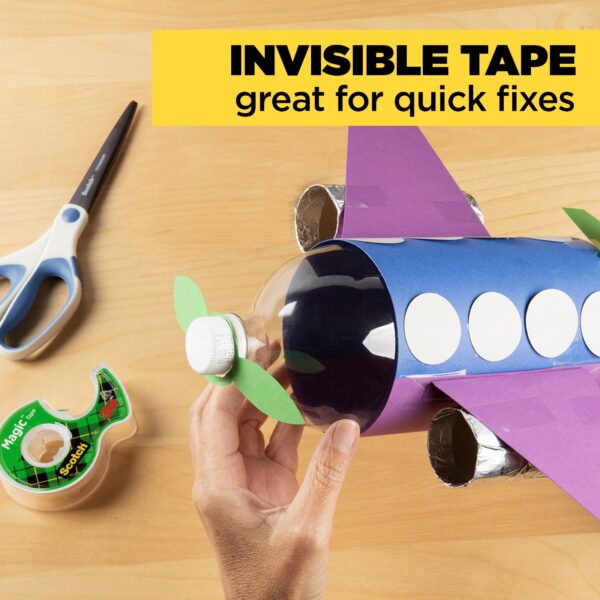Scotch Magic Tape lets you magically mend the many rips and tears on school assignments – securely, permanently and invisibly. The original matte-finish invisible tape uses unique 3M adhesive technology to bond tightly with paper and disappear without a trace. It’s the ideal matte tape for permanent, secure paper mending, whether you need to make a quick fix or an addition to your school projects. This clear tape is also perfect for fixing torn or ripped originals, like ripped college notebooks, essays, drawings, arts and crafts projects, library book pages and other paper projects. Easy to apply, this tape is photo-safe for worry-free mounting or mending of special photos for your dorm room or classroom. You can even write on this adhesive tape with a pen, pencil or marker, making it easy to label items. With the easy-to-use Scotch tape dispenser (included), Scotch Magic Tape rolls out smoothly and cuts easily with no time, energy or tape wasted. These dispensers are a convenient addition to teacher supplies and classroom supplies. Refill and reuse the included hand-held office tape dispenser with Scotch Brand Tape. The best projects start with the No. 1-selling home and office tape (based on 2022 NPD data).