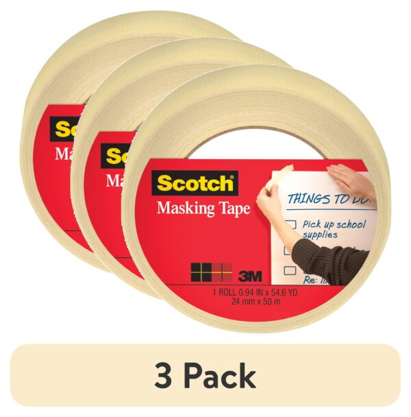 Scotch Home and Office Masking Tape is great for everyday uses such as labeling, mounting and bundling. Keep a roll in office, classroom, and junk drawer at home for easy access anytime. The strong adhesive applies easily to clean surfaces. To prevent residue, remove within 72 hours or 24 hours if exposed to sunlight. Recommended for use on non-damageable surfaces.