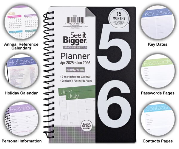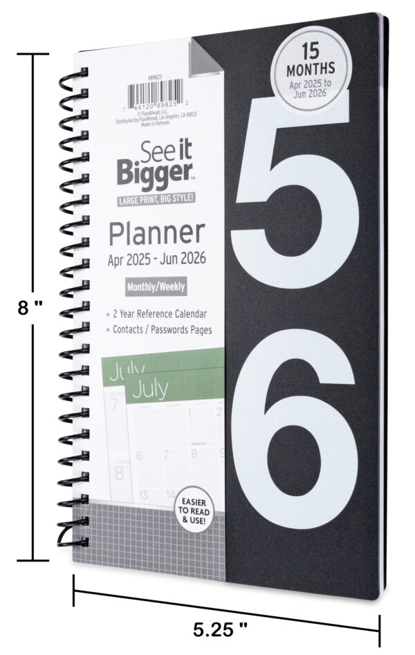 - See it Bigger monthly weekly dated planner covers 15 months from April 2025 to June 2026