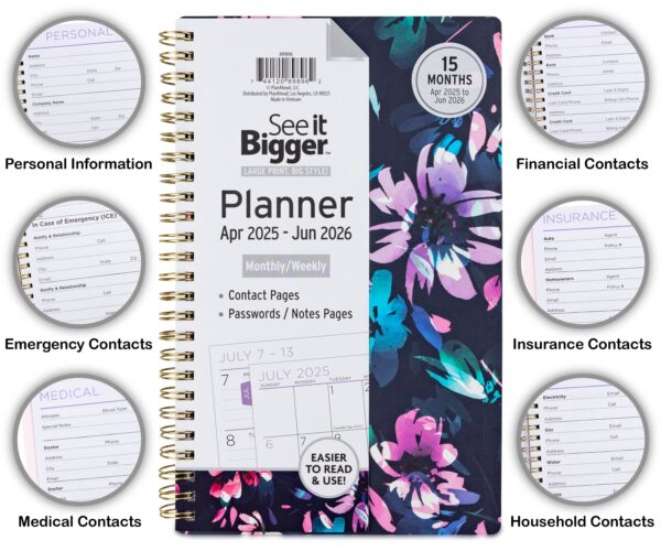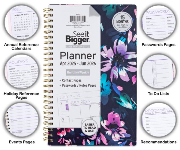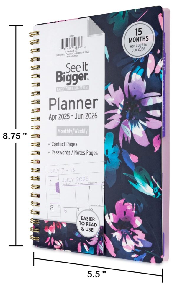 - See it Bigger monthly weekly dated planner covers 15 months from April 2025 to June 2026