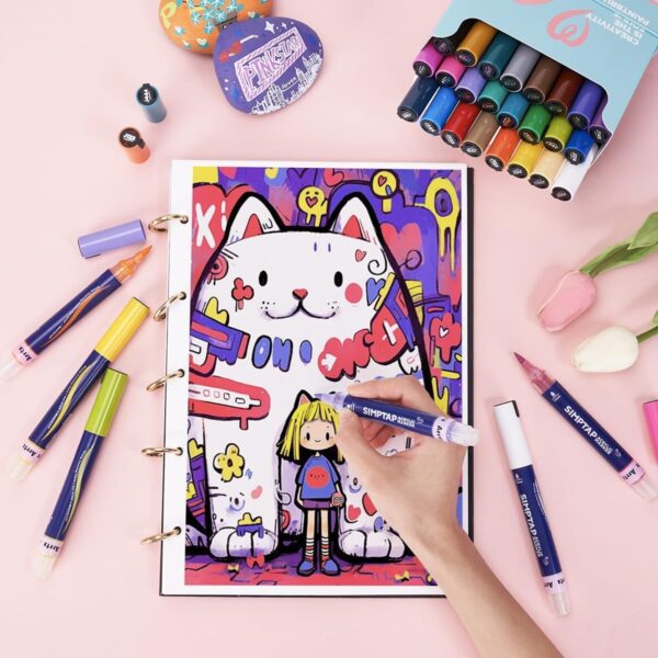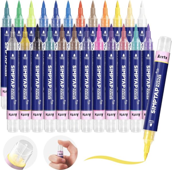 2 reviews for SIMPTAP Top Valve Action Markers, Set of 24 Colors Acrylic Paint Pens Art Supplies for Adults
