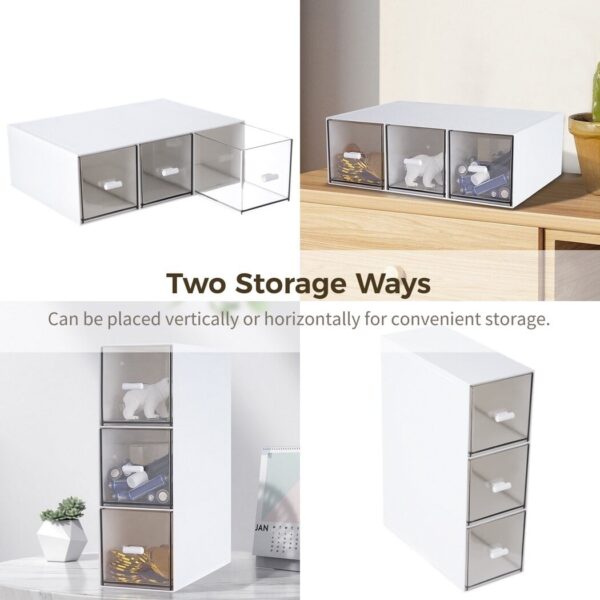 - 【Stackable Sundries Organizer Design】Adopting stackable modular storage design, this 3-drawer organizer can be freely combined with more organizers to extend horizontally and vertically, which can make perfect use of every corner of your home. With a grooved top, it can be stacked stably without easily collapsing.