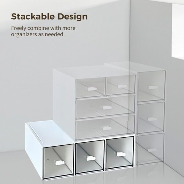 4 reviews for Small Stackable Storage Drawers, Bangcool Clear Storage Bins with 3 Drawers Bathroom Organizers Multifunctional Vanity Counter Desktop Makeup Organizer