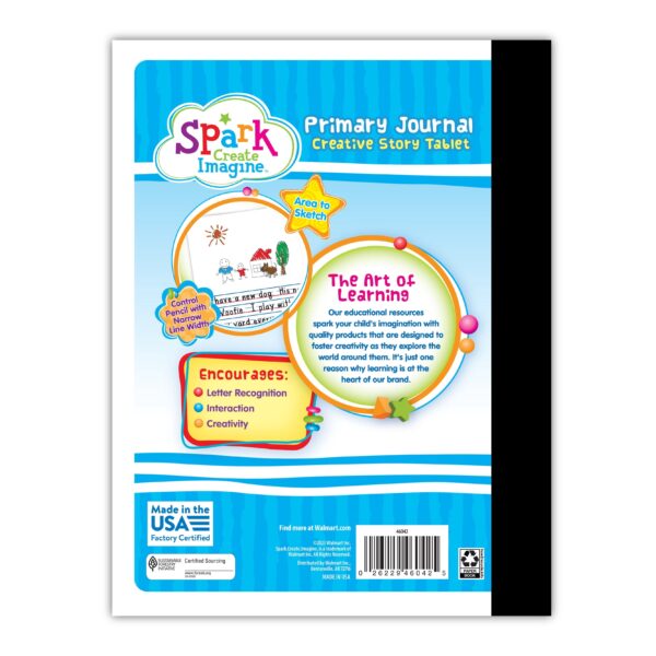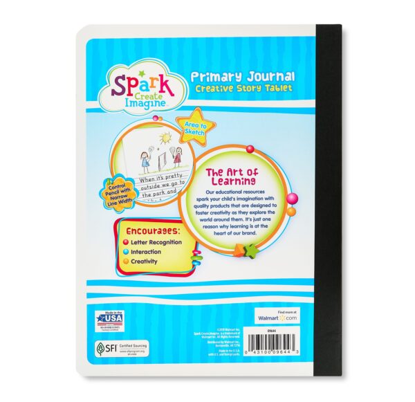 Practice makes perfect. Give beginning students the perfect place to practice their alphabet and create drawings. Spark Primary Journal lets young students learn and create, with plenty of space for writing, and room for their pretty pictures The Spark Primary Journal contains 100 double-sided pages for plenty of space to work. The top half of each page is blank for artwork or doodles (paper rule type: primary rule), while the bottom half is printed with solid and dotted line primary ruling. Letters are positioned using a red baseline, and the narrow line width helps with pencil control. Book bound binding is smooth and keeps pages securely in place. It’s perfect for creative writing exercises and is appropriate for Grade K-2 level students. The inside cover has manuscript alphabet for easy reference. There’s even space on the front cover for the student’s name so it’s easy to find the owner if it gets misplaced.