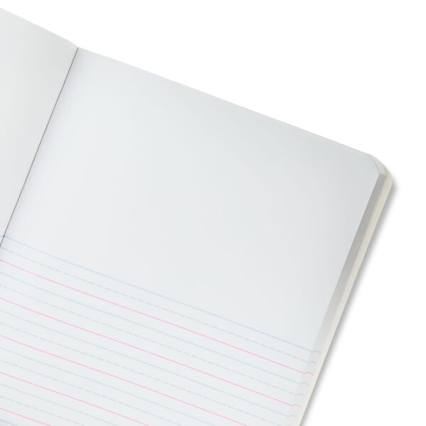 - Top half of each page is blank and the bottom half is printed with solid and dotted line primary ruling