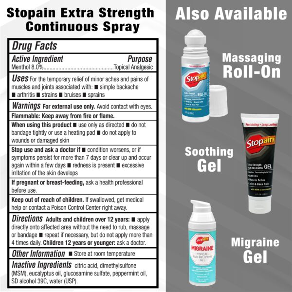 10 reviews for Stopain Pain Relief Spray 4oz (2 Pack) USA Made, Max Strength Fast Acting With MSM, Glucosamine, Menthol For Arthritis, Lower Back Sciatica, Knee, Neck, HSA FSA Approved Topical Analgesic Products