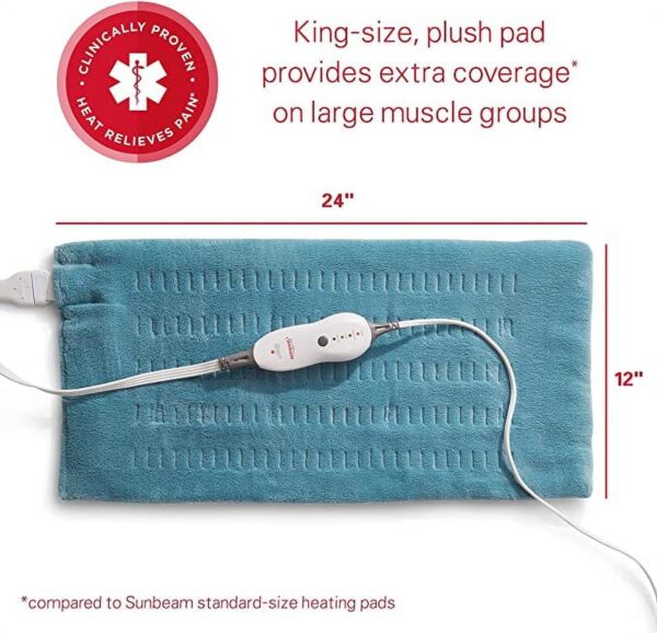 10 reviews for Sunbeam Heating Pad for Pain Relief | XL King Size SoftTouch, 4 Heat Settings with Auto-Off | Teal, 12-Inch x 24-Inch