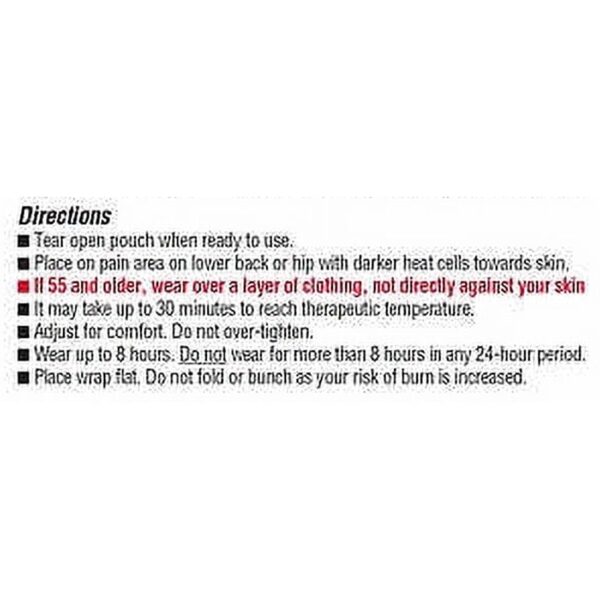 Back pain is often caused by tight, injured or sore muscles. ThermaCare® Lower Back & Hip HeatWraps deliver 8 hours of continuous, therapeutic heat and relieves pain for an additional 8 hours after you take it off. In fact, the American College of Physicians (ACP) recommends real heat as a first defense against acute lower back pain. These single-use wraps are designed to provide pain relief at home or on the go. ThermaCare® has patented heat cells that penetrate deep to increase circulation to promote healing, while relieving pain for up to 16 hours. That’s 8 hours of heat while you wear it, plus an additional 8 hours of relief after you take if off. So you don’t just feel better, you get better.
