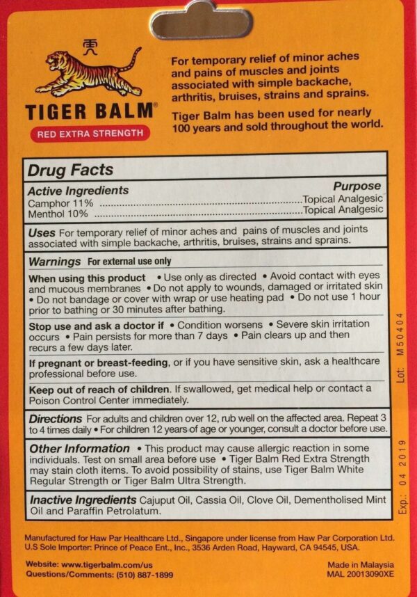 Tiger Balm Red EXTRA STRENGTH Pain Relieving Ointment