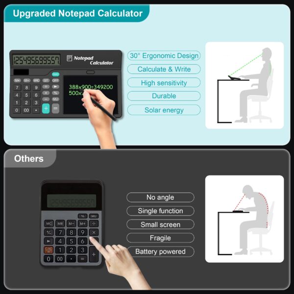 - Multifunctional Calculator with Notepad: Combines a calculator and writing tablet with a stylus for taking notes and calculations. No paper needed—boost productivity and save time by recording notes while you are calculating