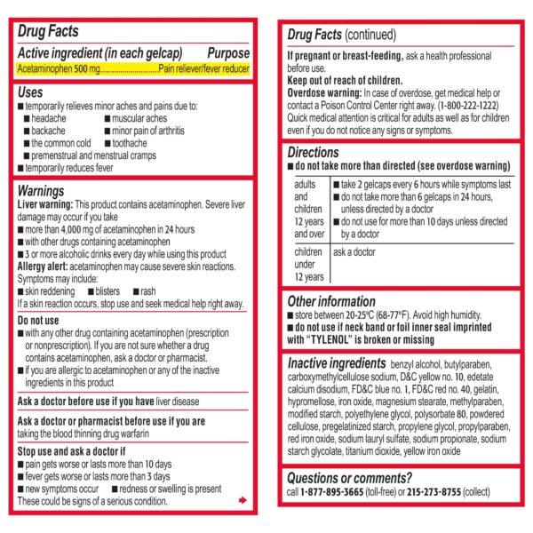 - Tylenol Rapid Release Gels pain medicine with 500 mg acetaminophen for fast, effective pain relief