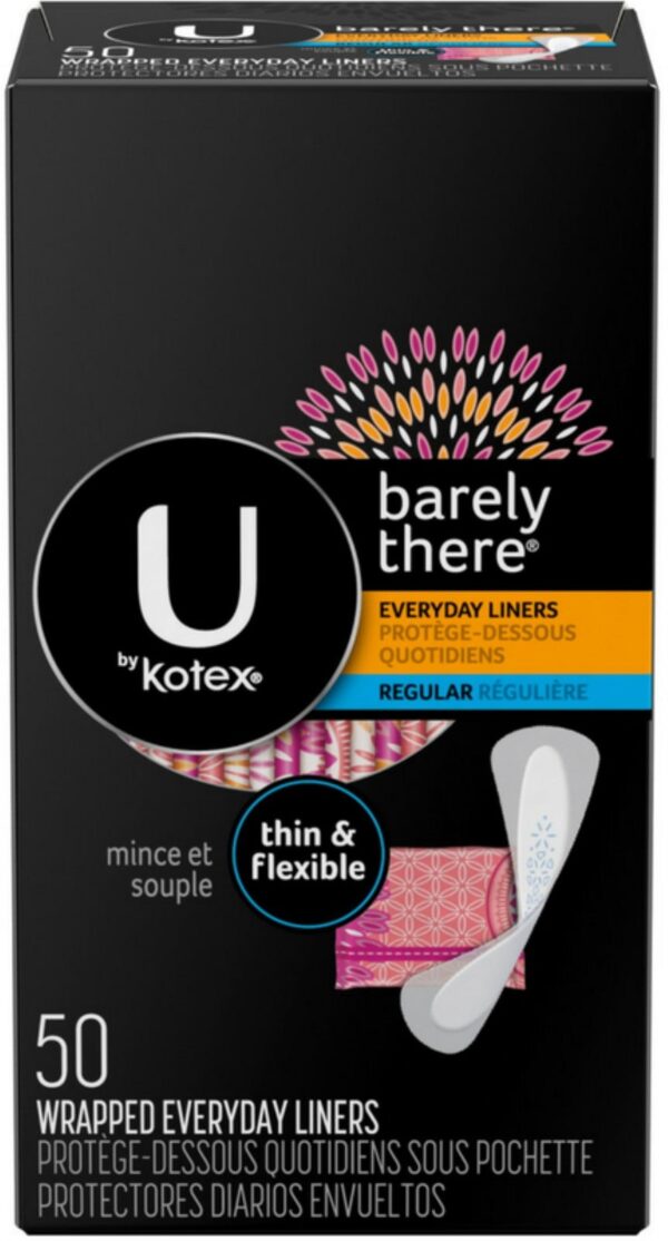 U by Kotex Barely There Thin Liners help you stay fresh when your period is light and they’re great for everyday use, too. Find the right one for you. Seriously. It’s a liner so thin and flexible, you might forget you’re wearing it. U by Kotex Barely There Thin Liners help you stay clean and fresh every day, or when your period is light, and spunky new designs are anything but ordinary.U by Kotex Barely There Thin Liners:
