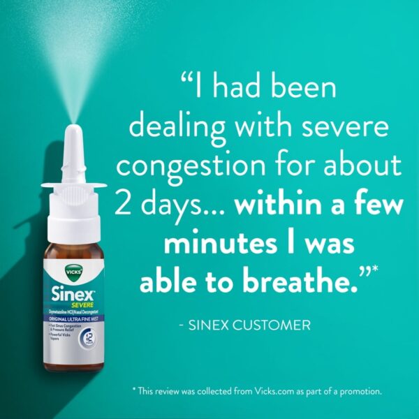 10 reviews for Vicks Sinex Severe Nasal Spray, Original Ultra Fine Mist, Decongestant Medicine, Sinus Relief, 265 Sprays, 2 Ct