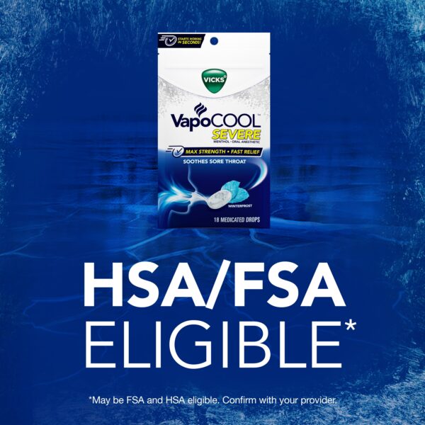 Vicks Vapocool Severe Medicated Sore Throat Drops, Max Relief, Menthol, Winterfrost, 18 ct