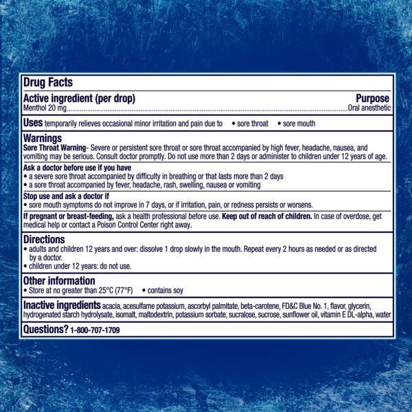 - IT’S NOT CANDY…IT’S POWERFUL RELIEF. Each drop contains 20mg menthol to soothe sore throats.