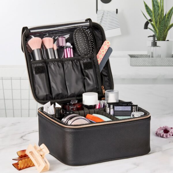 - Cosmetic Train Case Organizer, Black, 10″ x 4.75″ x 8.75″
