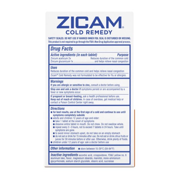 | Features | These quick-dissolve tablets, made with zinc, shorten colds when taken at the first sign., Clinically proven to shorten colds, Reduces severity of cold symptoms: Sore throat |