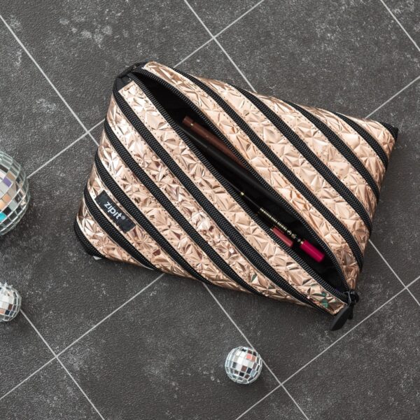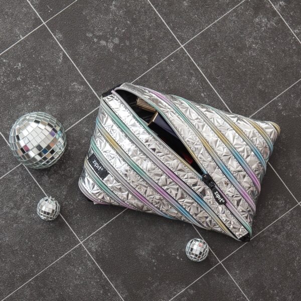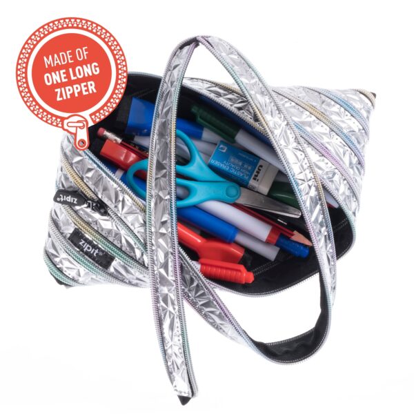 Discover the one-long-zipper design that distinguishes ZIPIT from the rest. As stylish as it is practical, this oversized pouch is ready to take care of all your storage needs with room to spare. The metallic polyester material comes with an ultra-modern, textured finish. Details like the oversized diagonal opening and the branded rubber zipper pull, make this pencil case a smart choice.