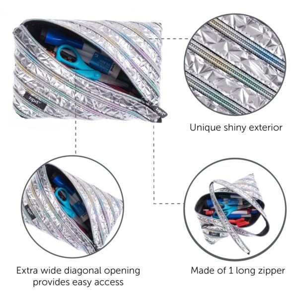 10 reviews for ZIPIT Metallic Large Pencil Case for Girls, Large Capacity Pencil Pouch, Case for Elementary School & Middle School (Silver-Rainbow)