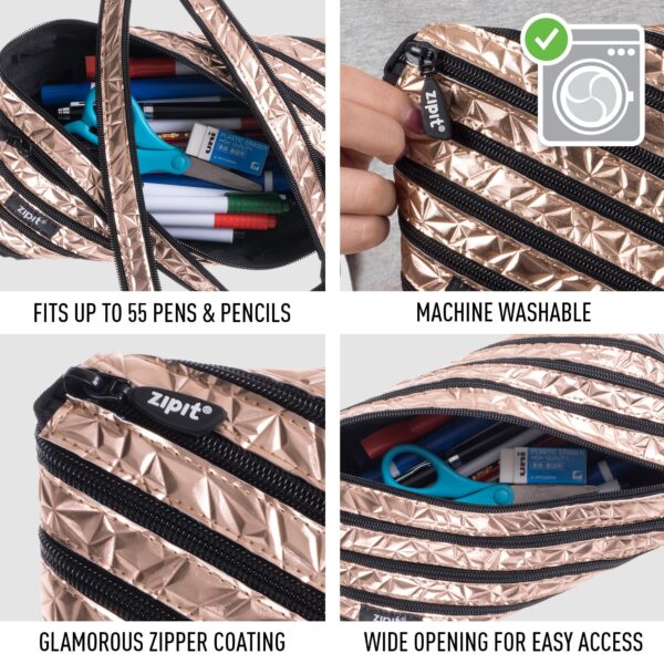 ZIPIT Metallic Large Pencil Case for Girls, Large Capacity Pencil Pouch, Case for Elementary School & Middle School (Silver-Rainbow)