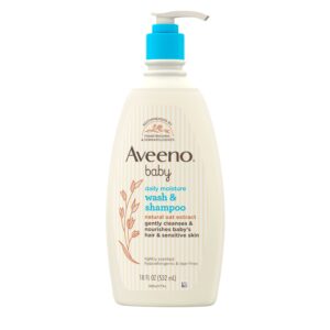 Aveeno Baby Daily Moisture Bath Body Wash & Shampoo, Liquid Soap, Oat Extract, 18 fl oz