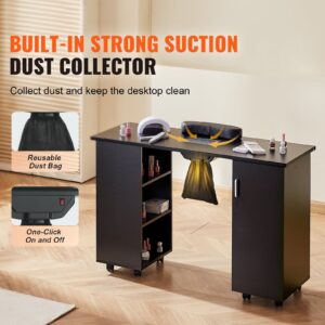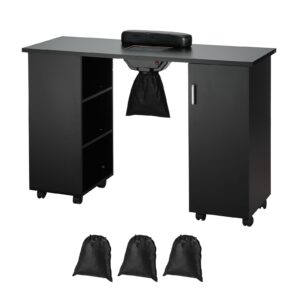KFFKFF Manicure Table Nail Desk for Nail Tech, Nail Table Beauty Salon Tech Station, Moveable Nail Tech Desk with 8 Wheels (4 Lockable), 3 Dust Bag & Wrist Rest, MDF Nail Art Workstation