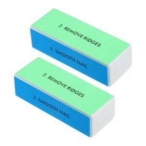 Unique Bargains 2 Pcs 4‑in‑1 Nail Buffer Block Smooth & Shine Block 4 Color Blue Pink White Green Stainless Steel