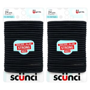 Scunci Thick Hair Black Elastics, All day strong hold No-Damage, 5mm thickness, 24-Pieces per pack (2-Pack) C30