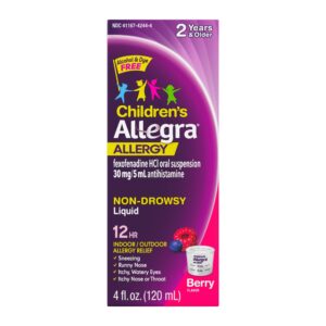 Allegra Children's 12-Hour Allergy Relief Liquid, Non-Drowsy Indoor and Outdoor Allergy Medicine, 30 mg Fexofenadine HCI Antihistamine For Kids, Berry Flavor, 4 oz.