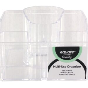 Equate Clear Makeup & Beauty Accessories Organizer with 6 Compartments, Size 7" x 7" x 4"