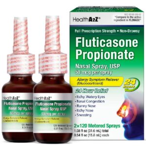 HealthA2Z® Fluticasone Propionate Nasal Spray | 240 Sprays | 50 mcg per Spray | 24 Hour Allergy Relief | 120 Sprays x 2 Pack | Relief from Nasal Congestion | Runny Nose | Sneezing