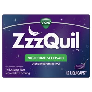 Vicks ZzzQuil Sleep Aid Liquicaps, Diphenhydramine Hcl, Over-the-Counter Medicine, 12 Count