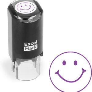 Excelmark Smiley Face Stamp, All-Season Teacher Stamp, Easy to Use Self-Inking Stamp, Round Teacher Stamp Classroom Supplies, Rubber Stamp with an ABS Plastic Construction, Purple Ink.