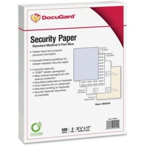 DocuGard Standard Security Paper for Printing Prescriptions & Preventing Fraud, 6 Features Letter - 8 1/2" x 11" - 24 lb Basis Weight - 250 / Pack - Blue, Canary
