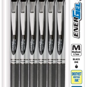 Pentel EnerGel RTX Retractable Liquid Gel Pen, Medium Line, Metal Tip, Black Ink, 6 Pack (BL77BP6A)