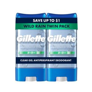 Gillette Antiperspirant Deodorant for Men, Clear Gel, Wild Rain, Twin Pack, 3.8 oz