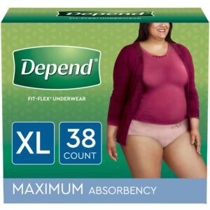 Depend Fit-Flex Incontinence Underwear for Women, Maximum Absorbency, Extra-Large, Light Pink, 38 Count