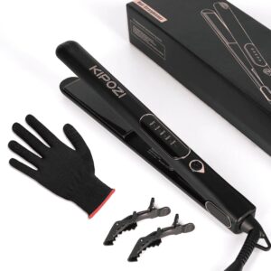 KIPOZI Professional 1" Tourmaline & Ceramic 2 in 1 Flat Iron Hair Straightener, Ionic, Black