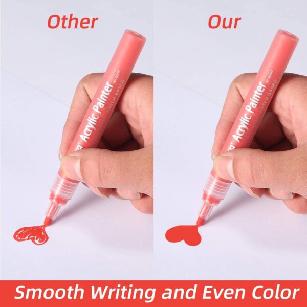 - 【Wide Application】: These acyrillic paint pens are suitable for scrapbook, greeting cards, wedding guest book sign, rock painting, food jars, glass and wood paint projects. You can use them on on any smooth surface, metal, ceramics, wood, rubber, glass painting, stone, Easter eggs, plastic and paper.