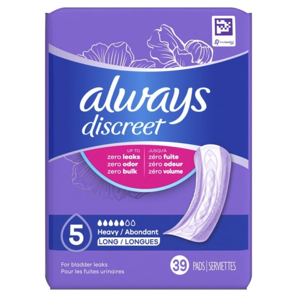 - Formerly named Always Discreet Incontinence Pads Maximum, Long Length