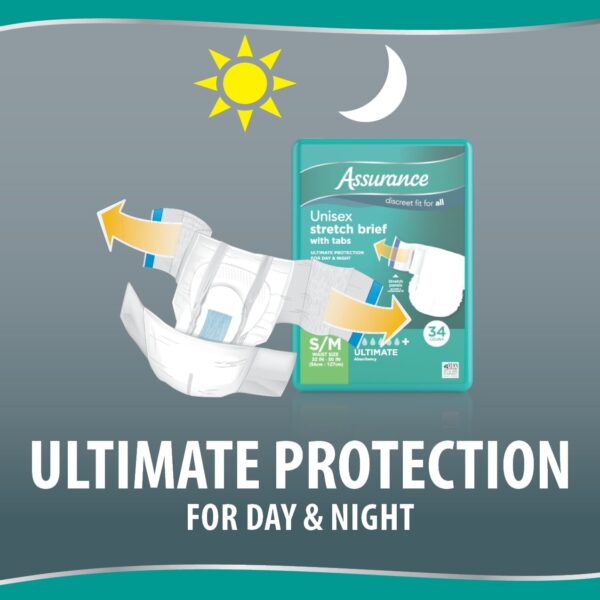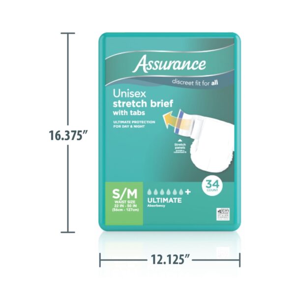 - Assurance Unisex Stretch Briefs with Tabs, S/M, 34 Count