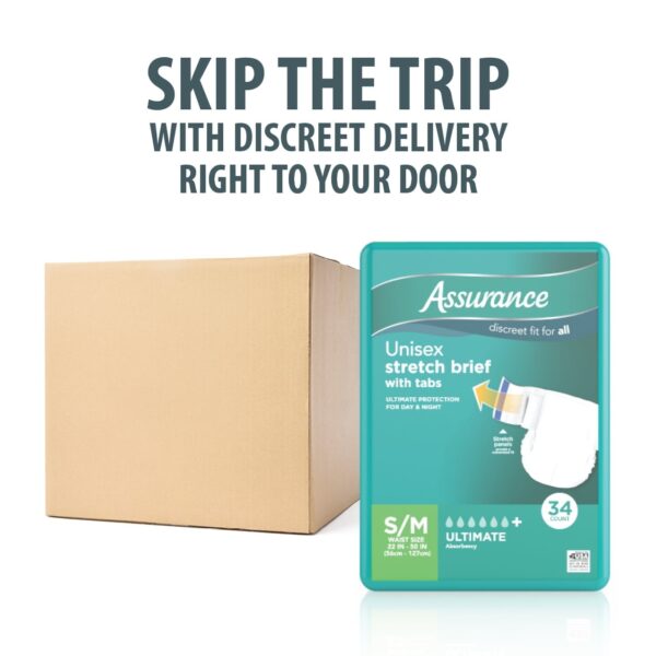 Assurance Unisex Stretch Briefs with Tabs, S/M, 34 Count provide secure and discreet incontinence protection with ultimate absorbency for both day and night. Designed to fit waist sizes from 22 to 50 inches, these briefs feature adjustable tabs and stretchable sides for a personalized and comfortable fit. The soft, breathable fabric helps keep skin dry, while the absorbent core locks away moisture. Assurance Unisex Stretch Briefs with Tabs, S/M, 34 Count are perfect for everyday use with confidence and comfort.
