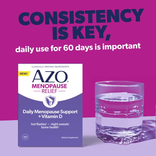 AZO® Daily Menopause Relief + Vitamin D Supplements for Women, Reduces Hot Flashes and Night Sweats, 30 Count