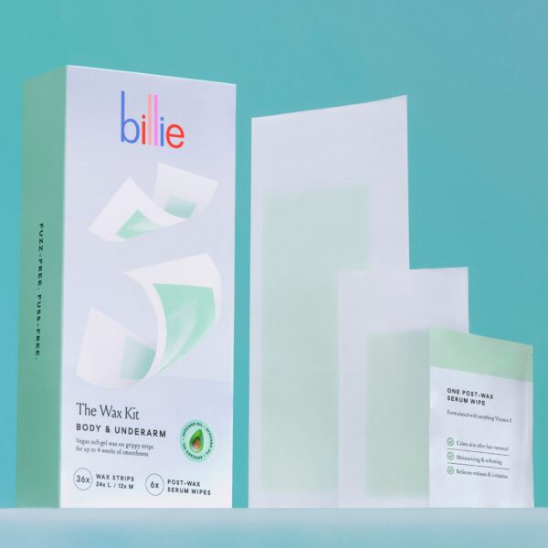 - Billie Waxing Kit, Body & Underarm Hair Removal Wax Strips, 36 Wax Strips, 6 Post-Wax Serum Wipes