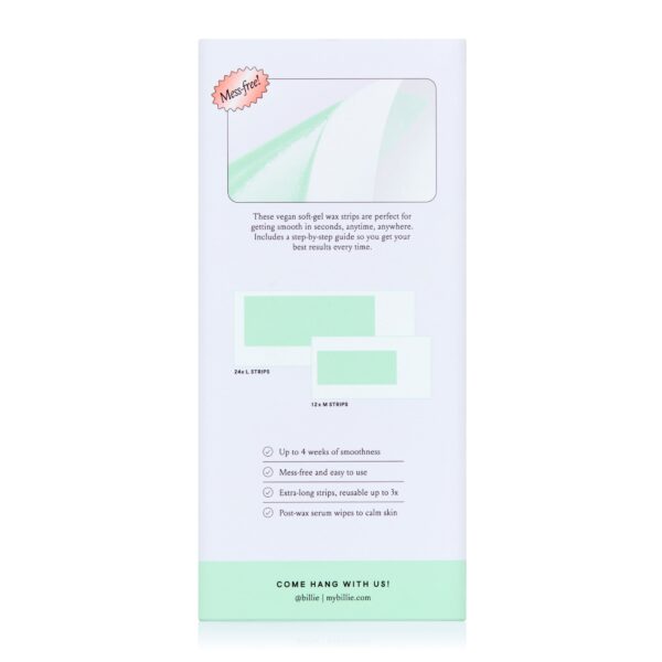 Want long-lasting smoothness around your legs, arms, or pits? Go stubble-free for up to 4 weeks with the easy-by-design Billie Wax Kit. Vegan, soft-gel formula made with avocado oil for fuss-free, mess-free hair removal. No need for heating, rubbing, or long prep time. Designed with extra-grippy strips and extra-long pull tabs for quick and easy hair removal. It comes with soothing serum wipes to calm skin after waxing. Afterward, soothing serum wipes help calm skin and remove any post-wax residue. The included wax guide has step-by-step instructions and tips so you get smooooth results every time, whether you’re a first-time waxer or a long-time pro. Billie Waxing Kit, Body & Underarm Hair Removal Wax Strips, 36 Wax Strips, 6 Post-Wax Serum Wipes.